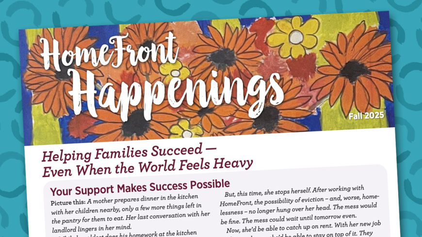 Through our quarterly HomeFront Happenings, you can understand more about homelessness and poverty in Central New Jersey and discover inspiring stories and updates. We love to showcase how our compassionate community makes it possible—helping families impacted by poverty and homelessness become stable and thrive.